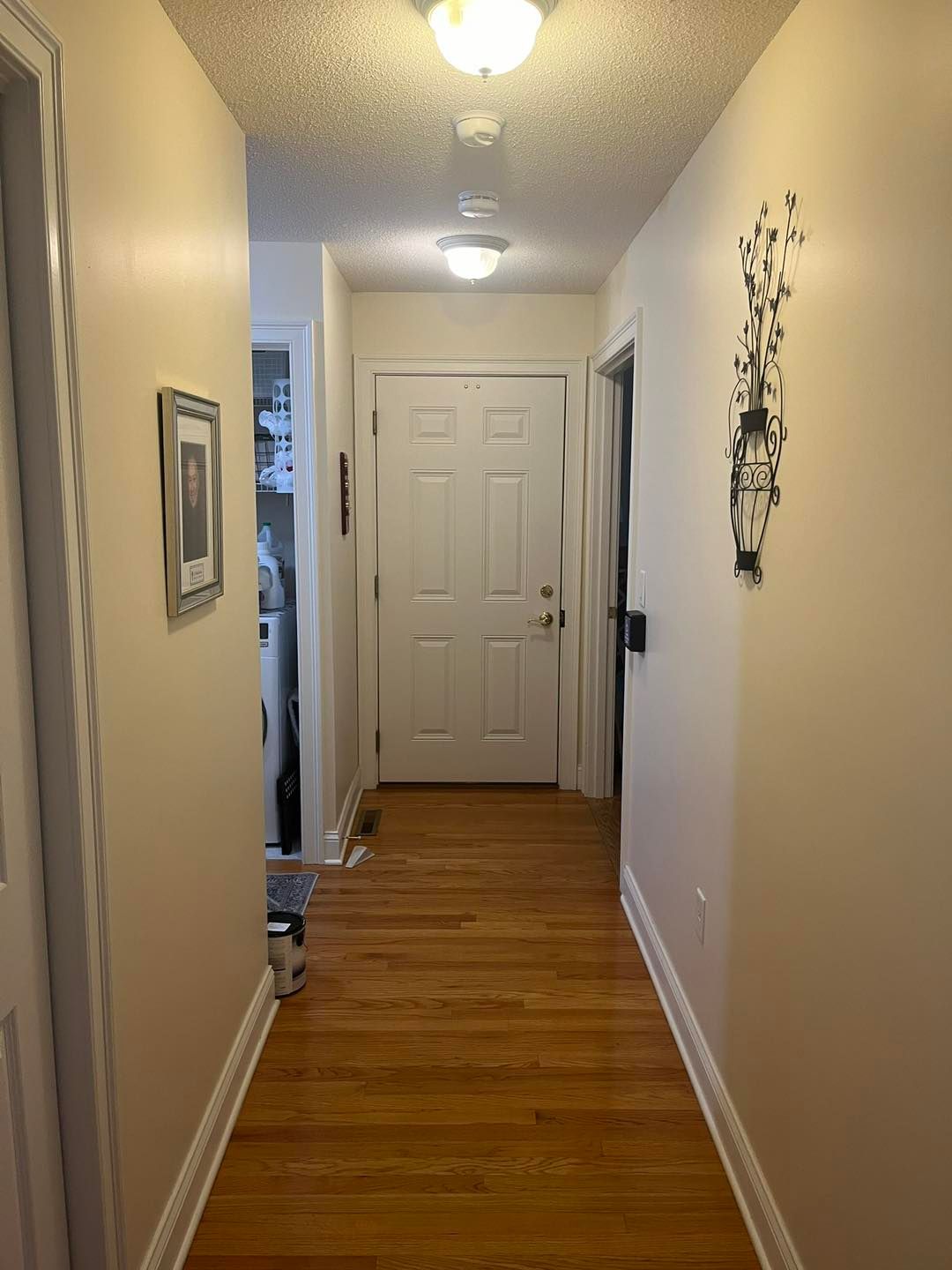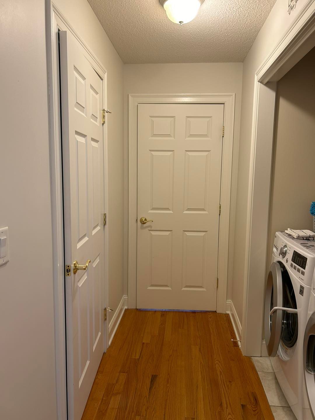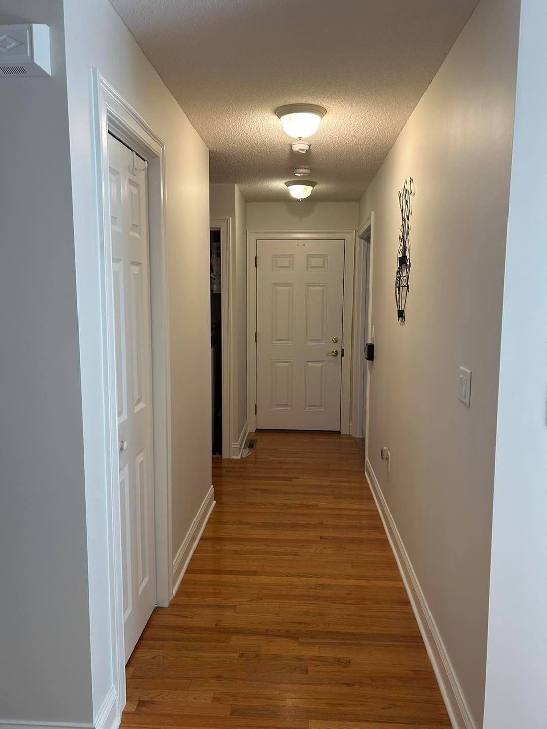 From there we moved on to the hallways and entryway. Again, the baseboard and doors were given two coats of White Dove and the walls two coats of Wood Ash.