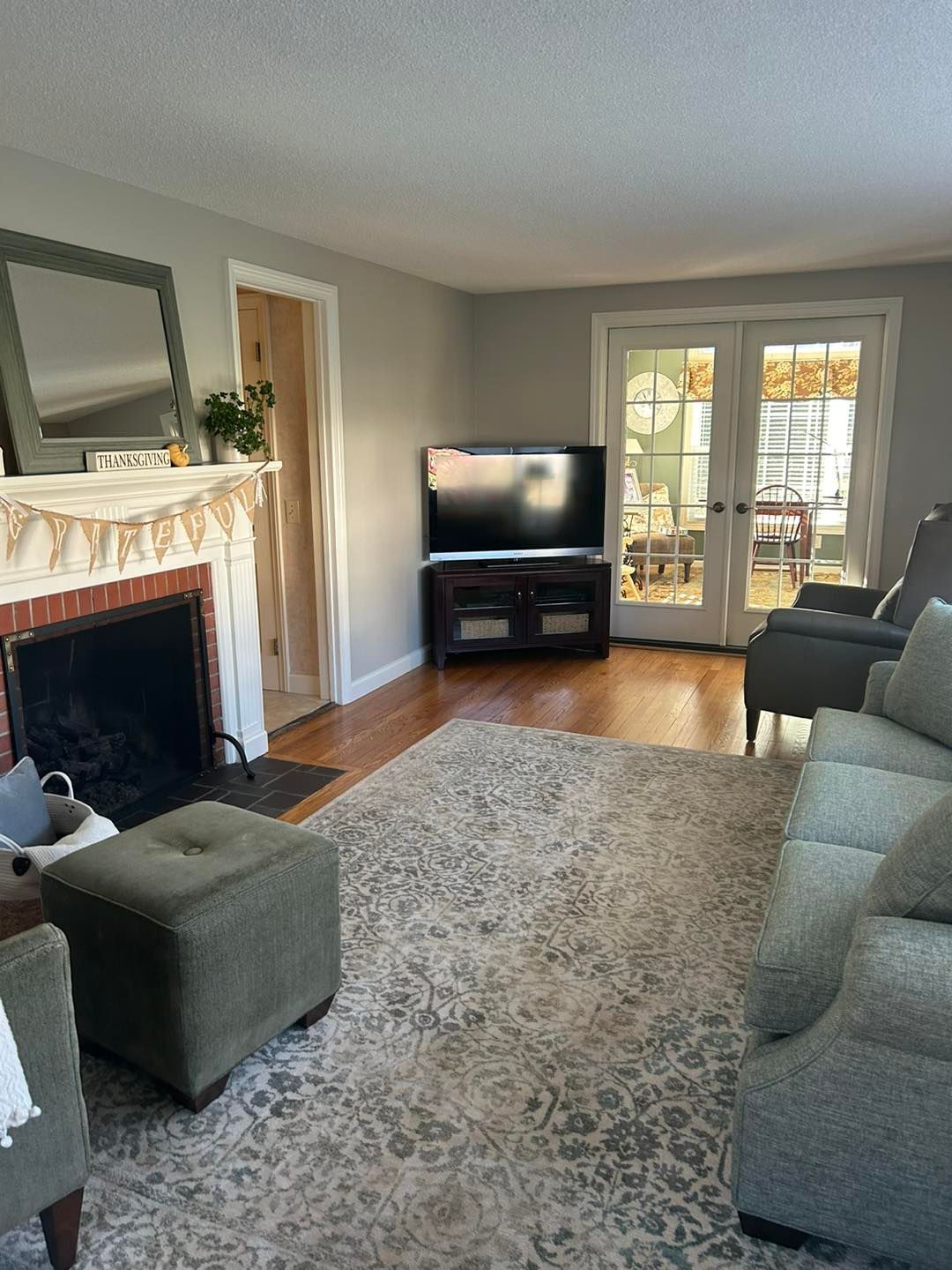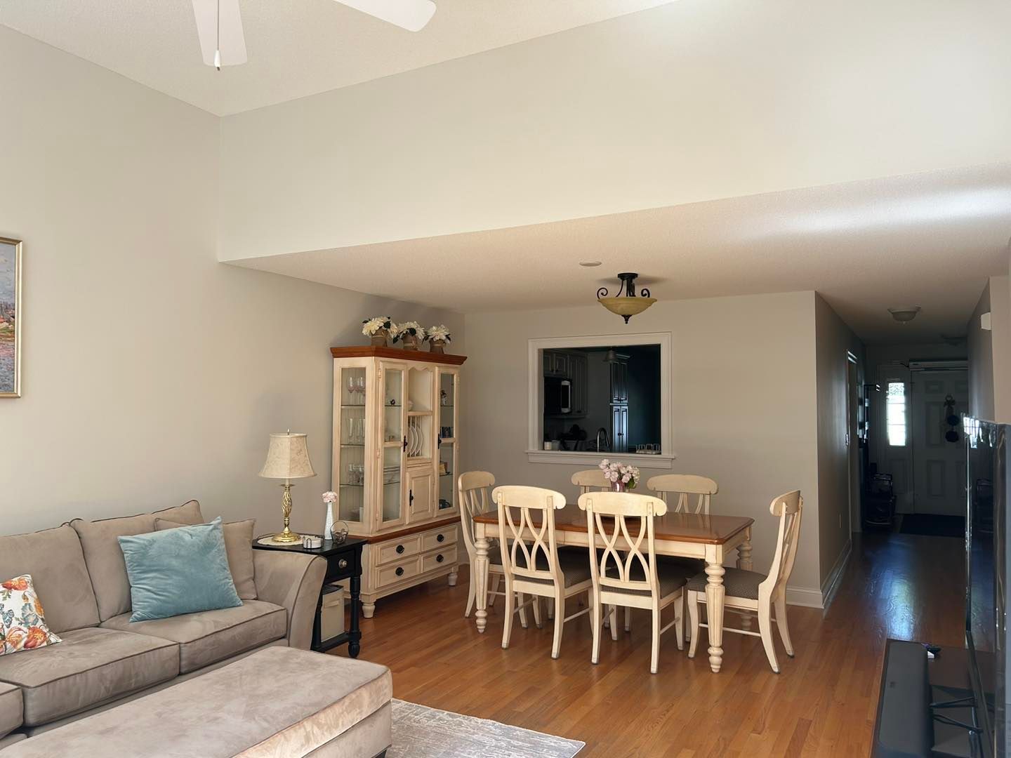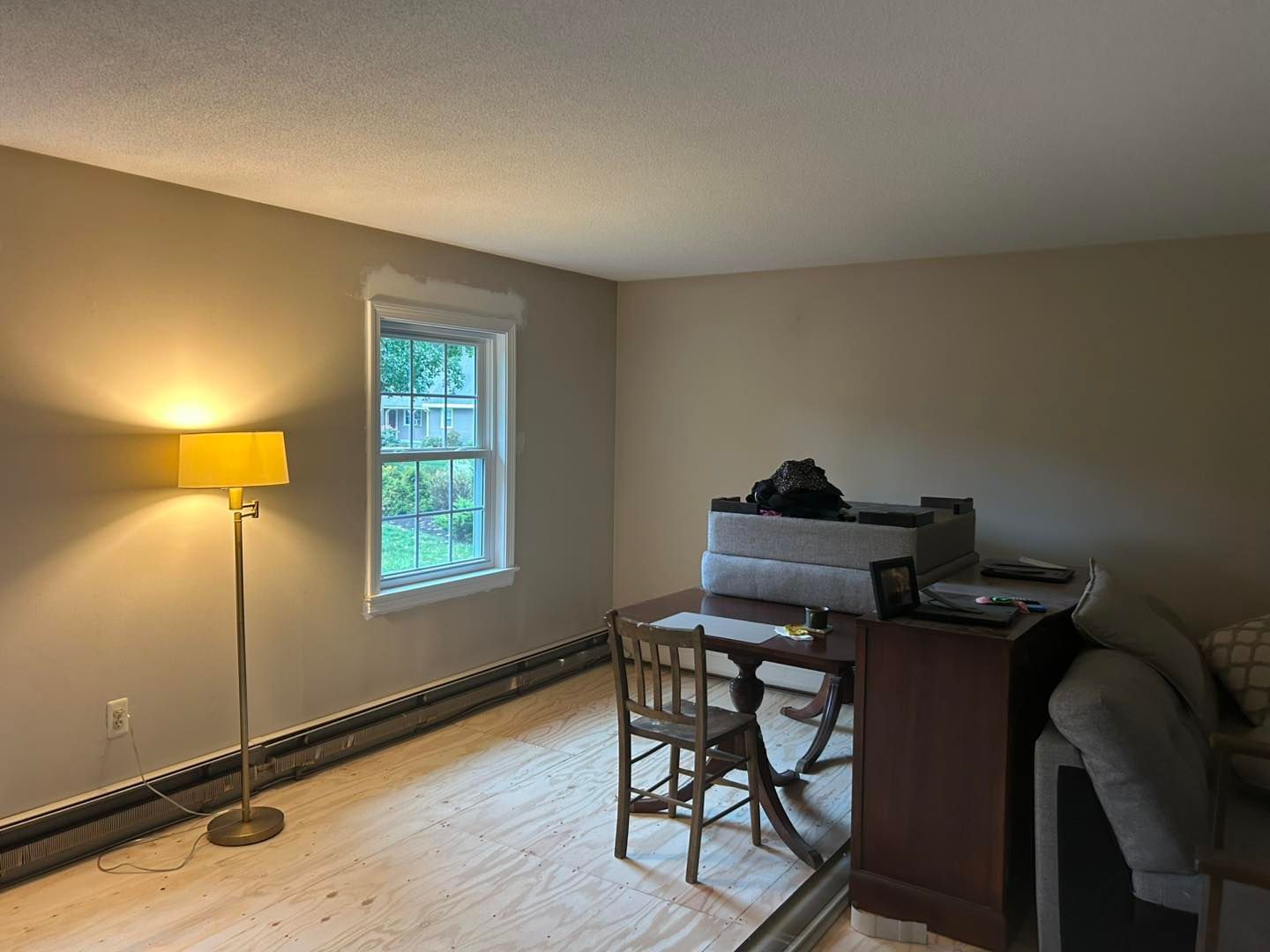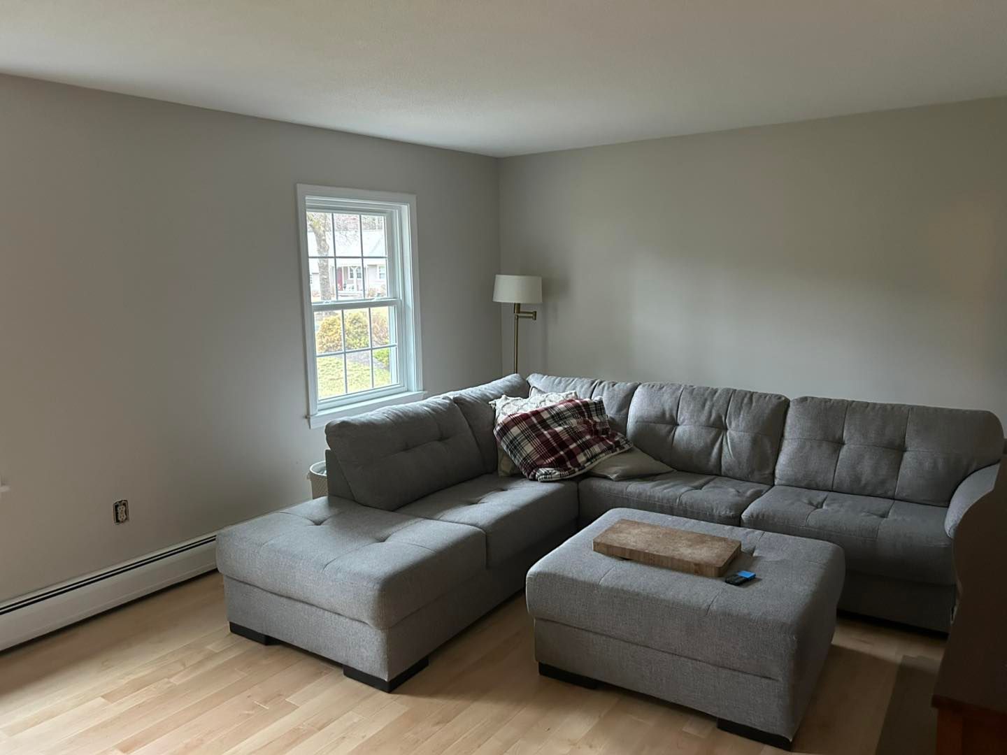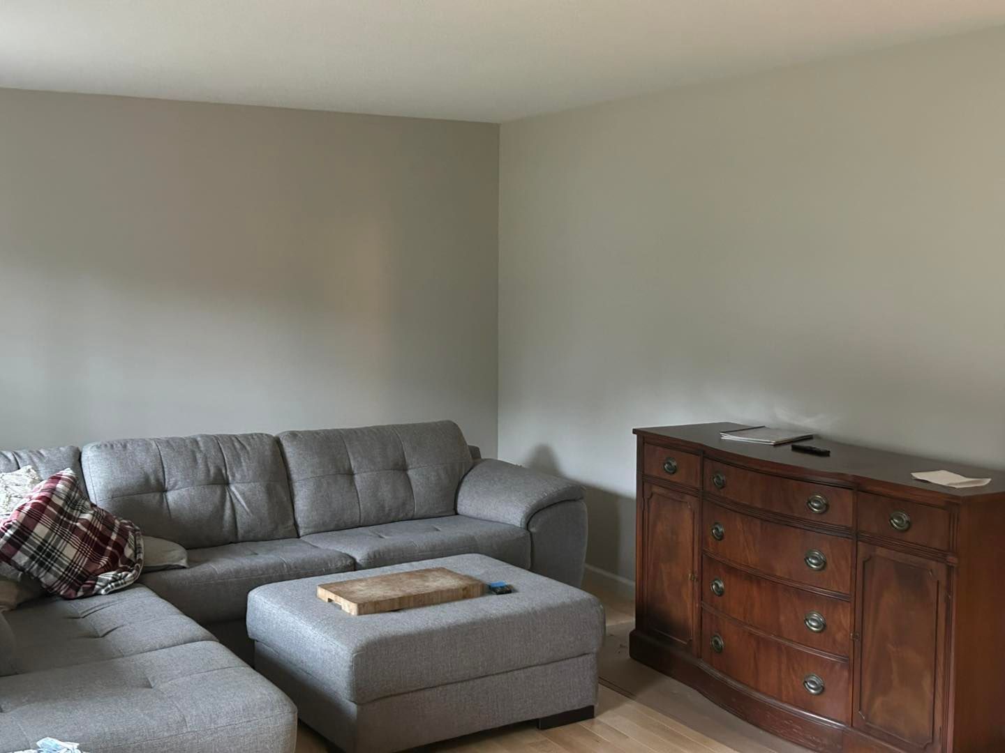 This time she needed her living room upgraded from a shade of beige to Coventry Grey (eggshell finish).