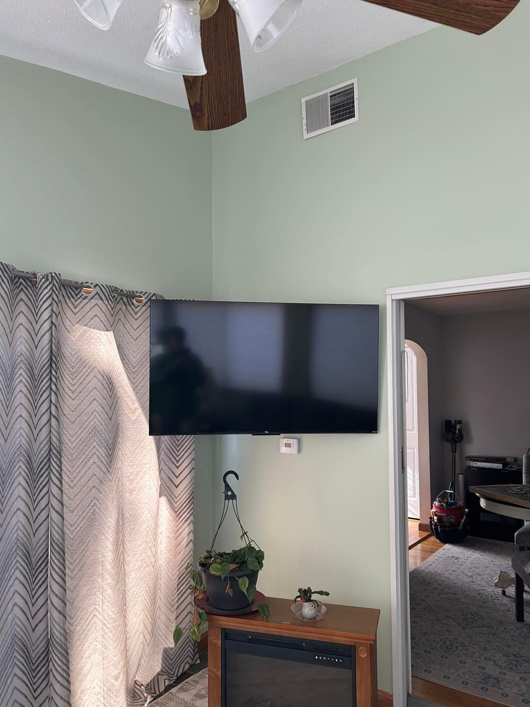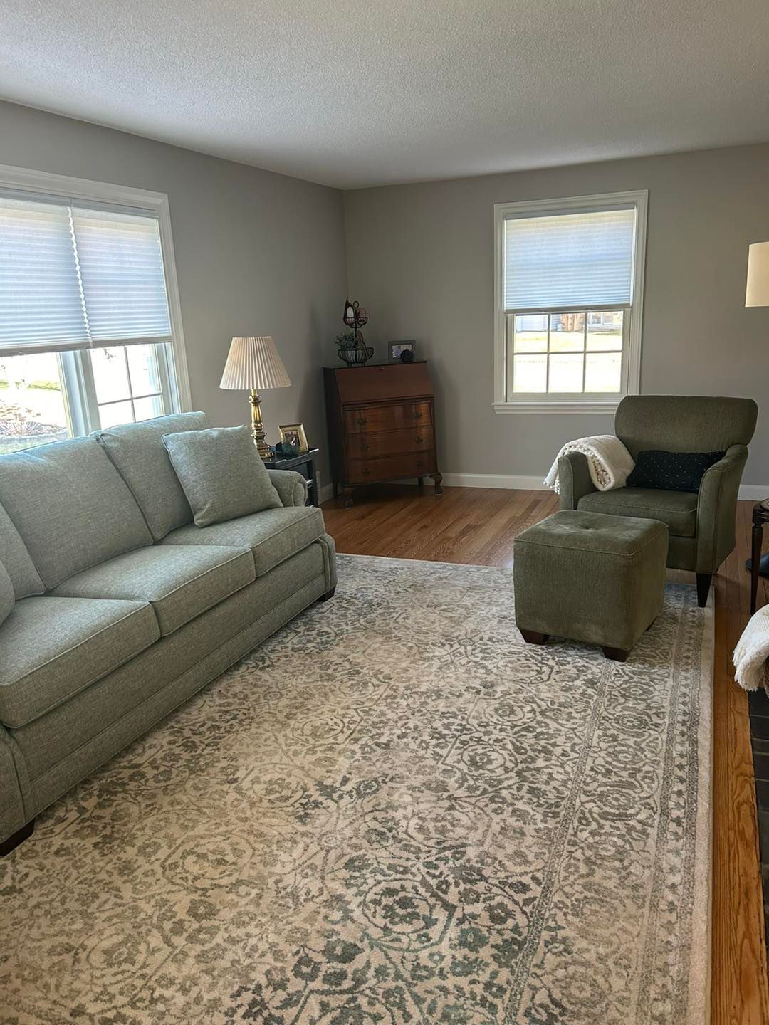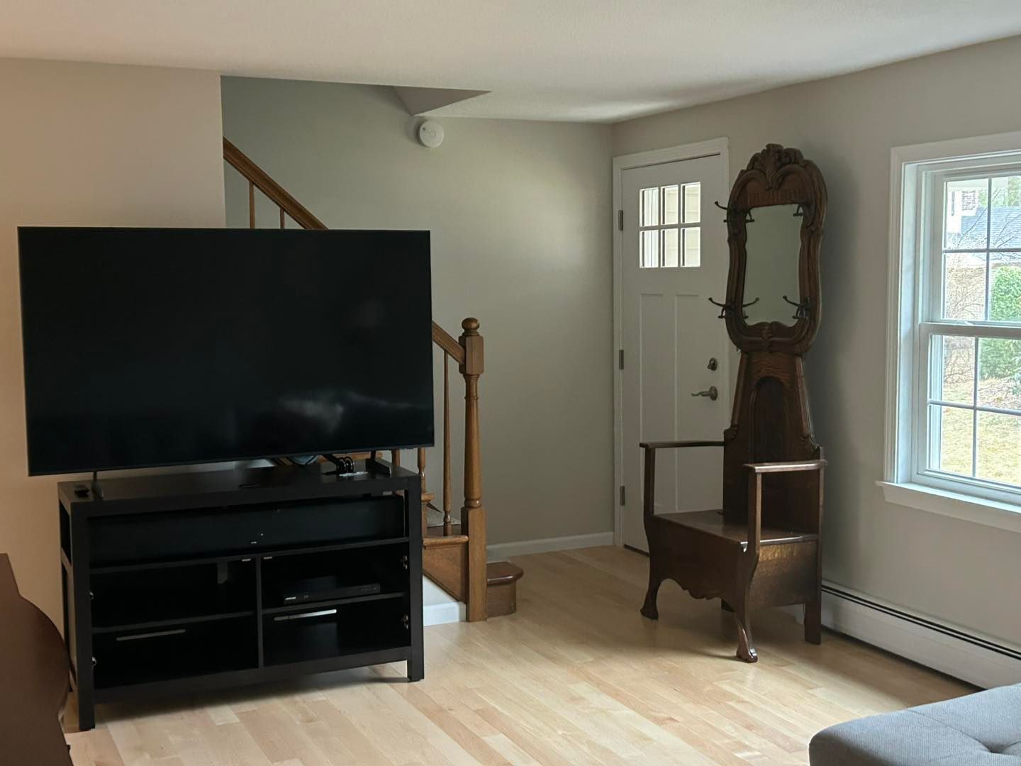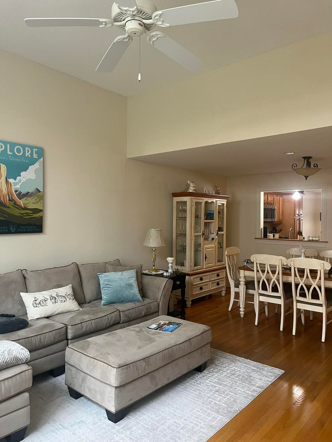 This time she needed her living room upgraded from a shade of beige to Coventry Grey (eggshell finish).