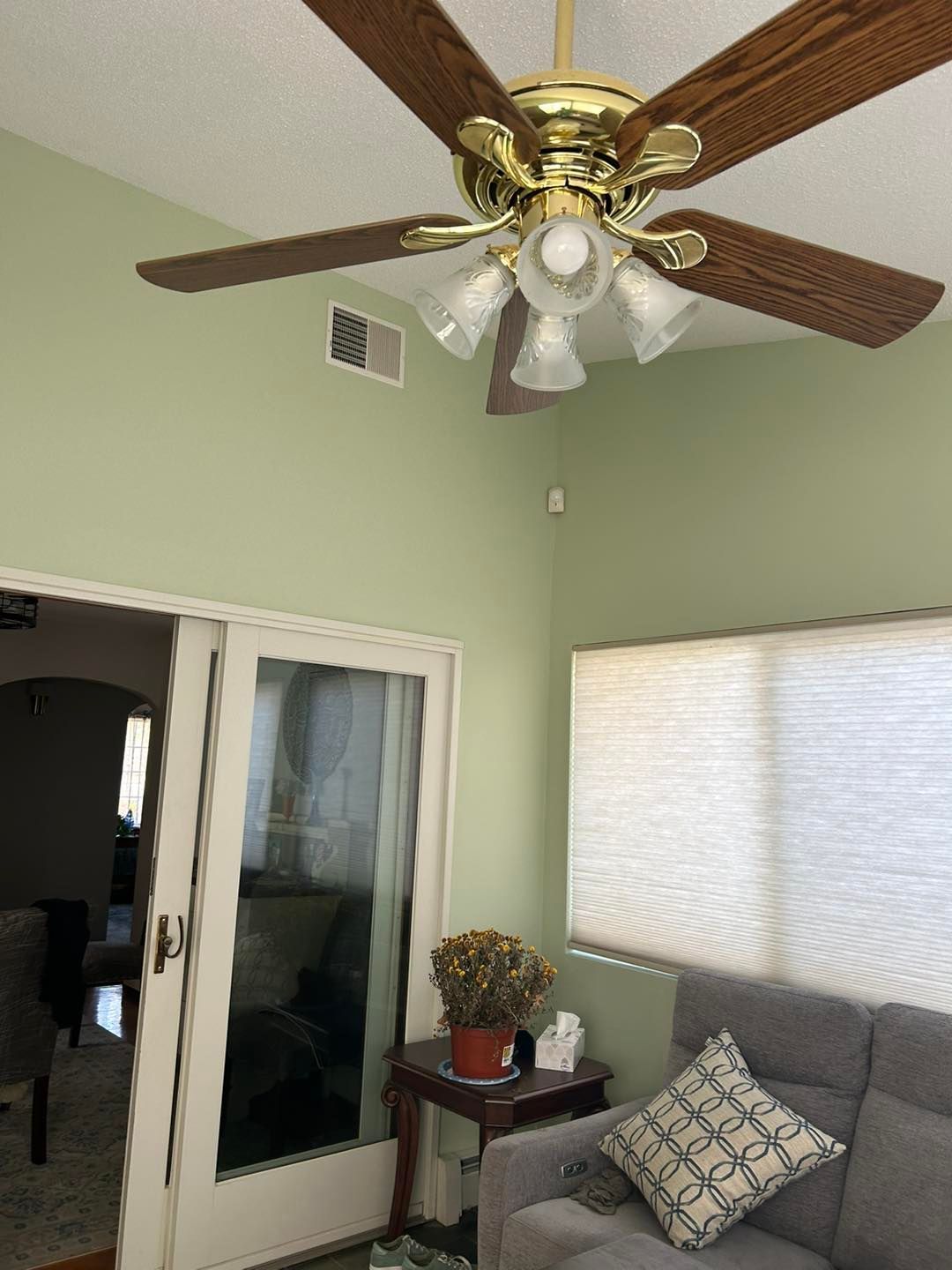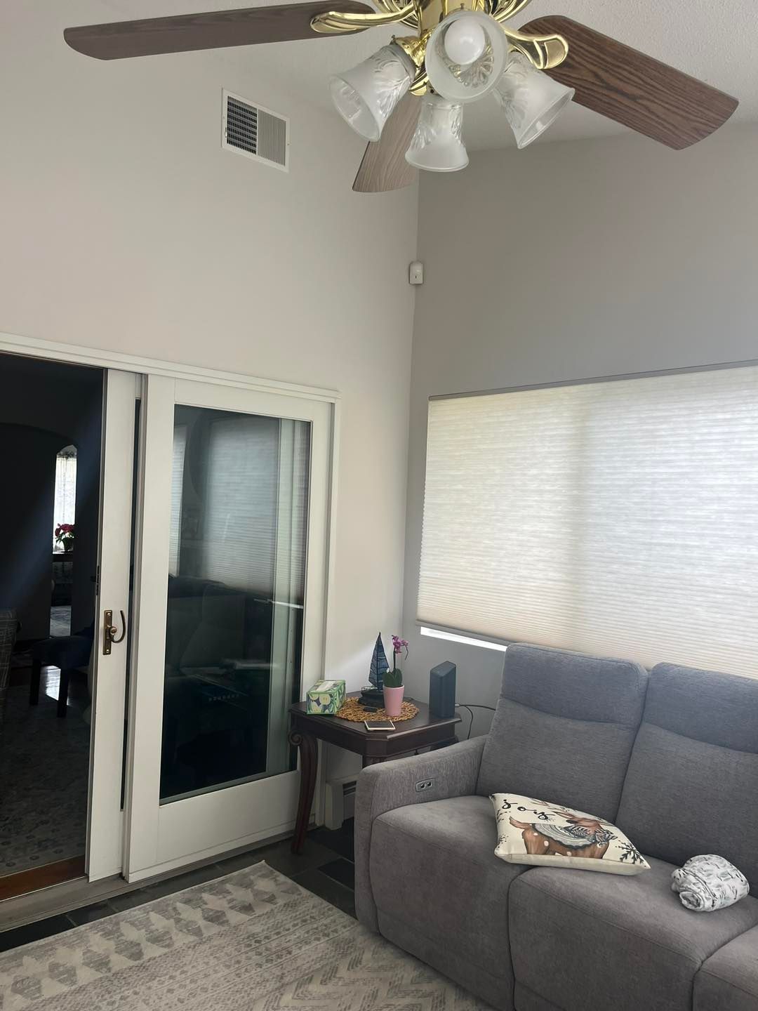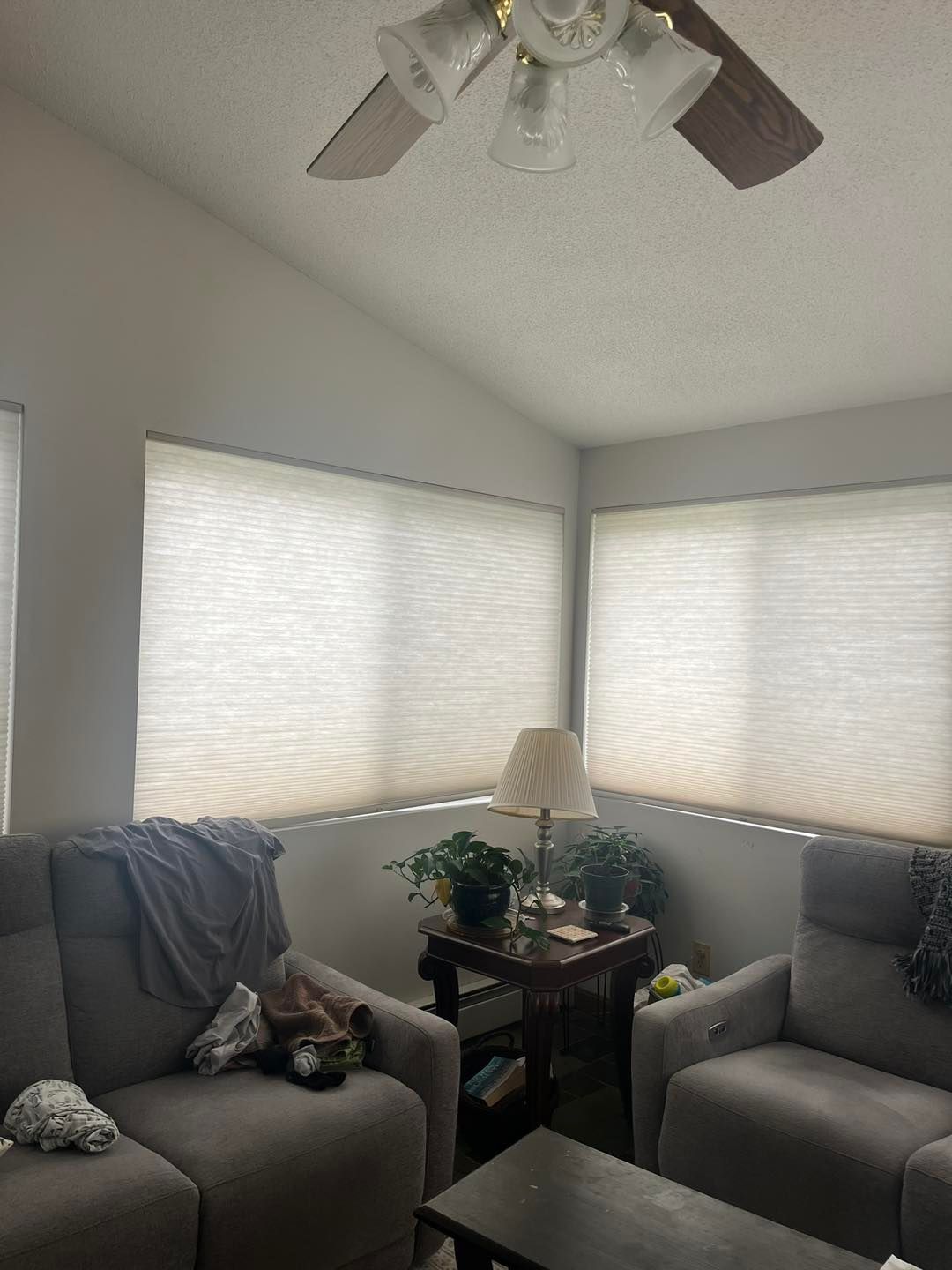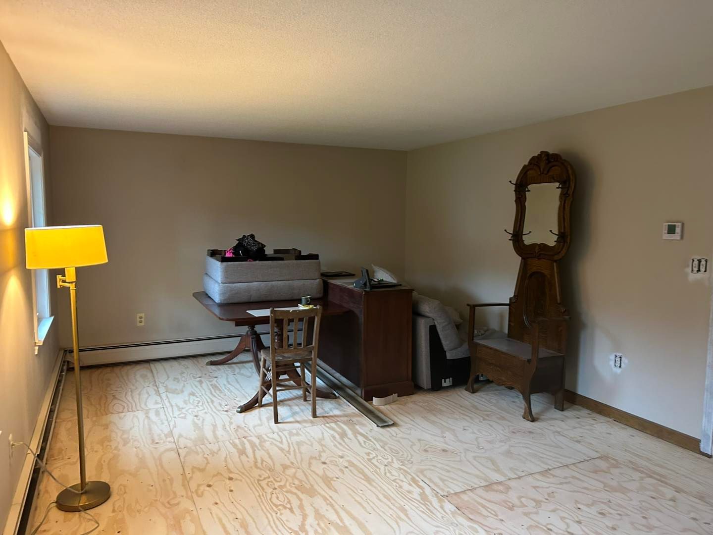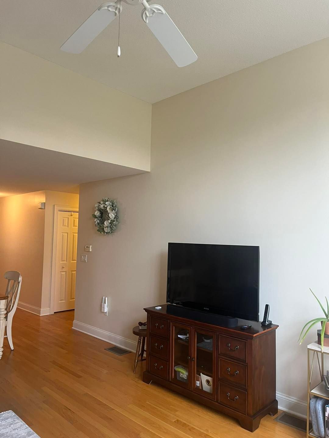 This time she needed her living room upgraded from a shade of beige to Coventry Grey (eggshell finish).