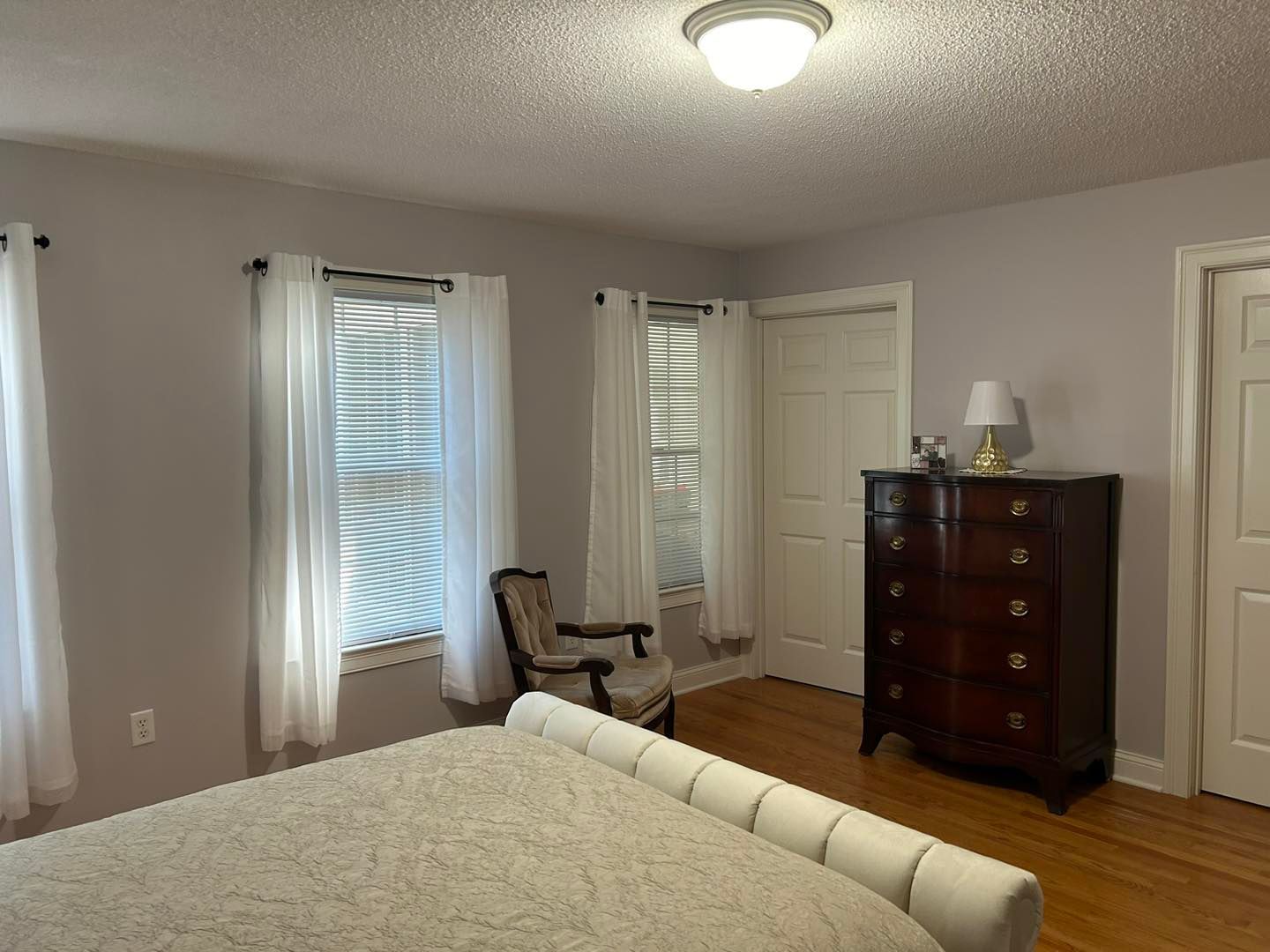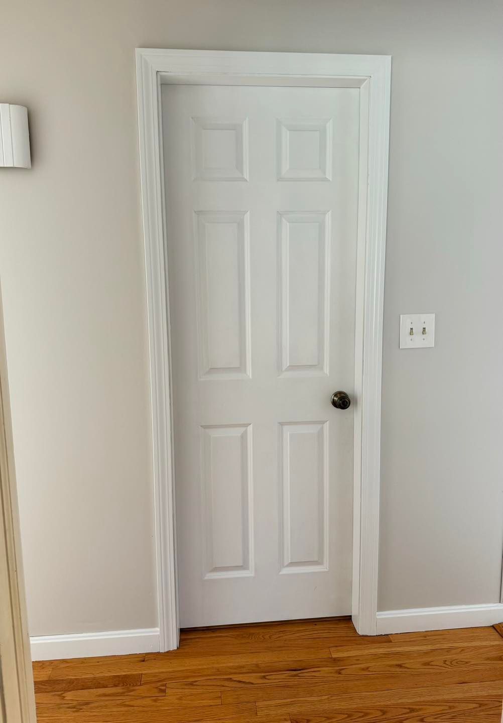 Some detail work was needed in the master bedroom where the trim, baseboard, closet and bath doors were all given 2 coats of White Cloud. (The walls had been painted by the homeowner)