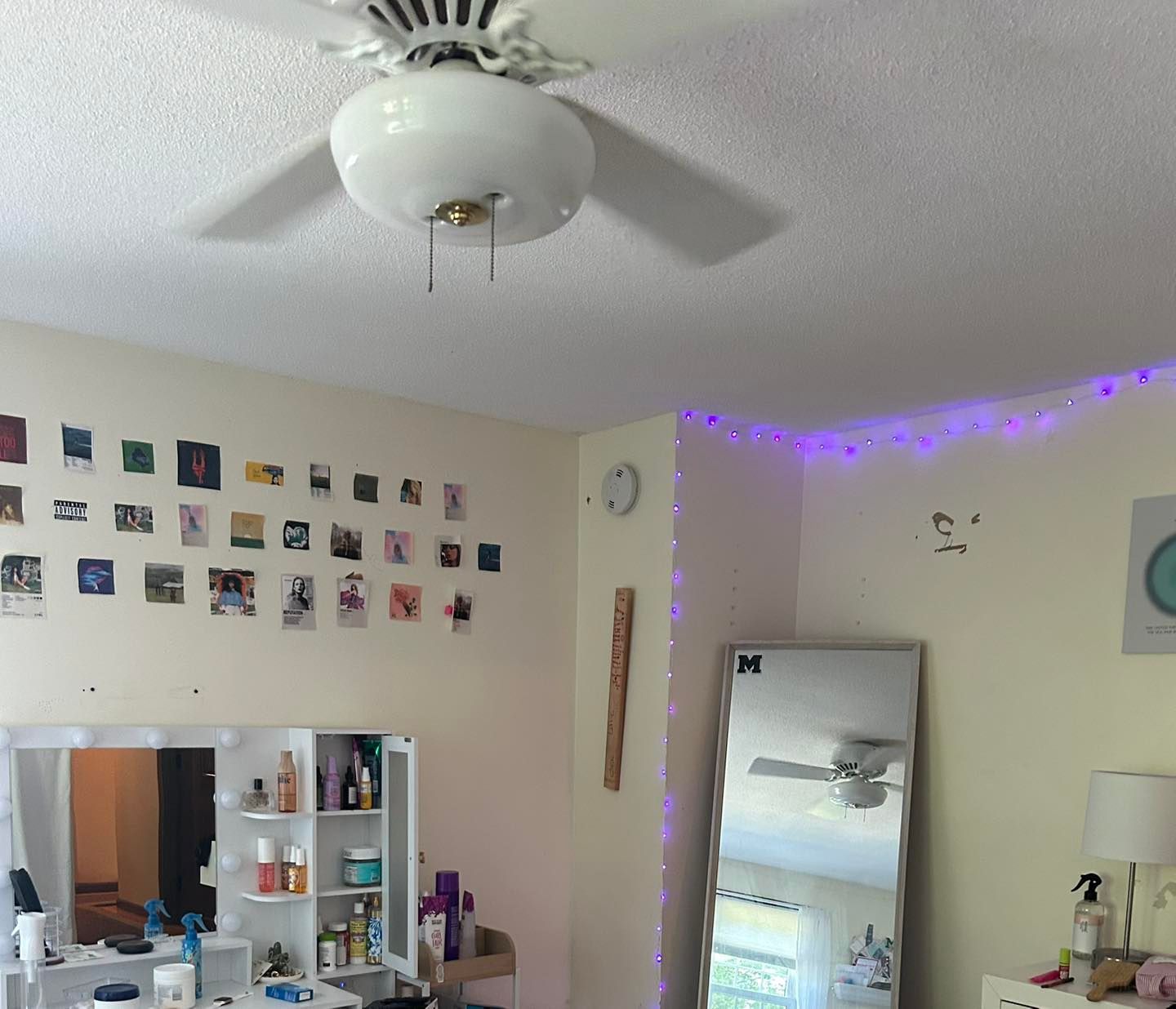 The water stains were all hit with Bin primer then the entire ceiling was hit with two coats of Benjamin Moore’s Waterborne ceiling paint.