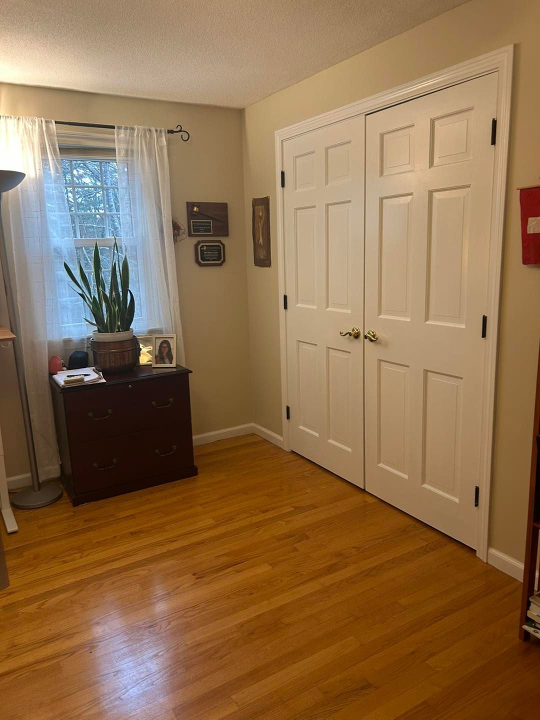 The office was also given two coats of white cloud in the baseboard, trim and closet door. The walls also given two coats of Balboa Mist.