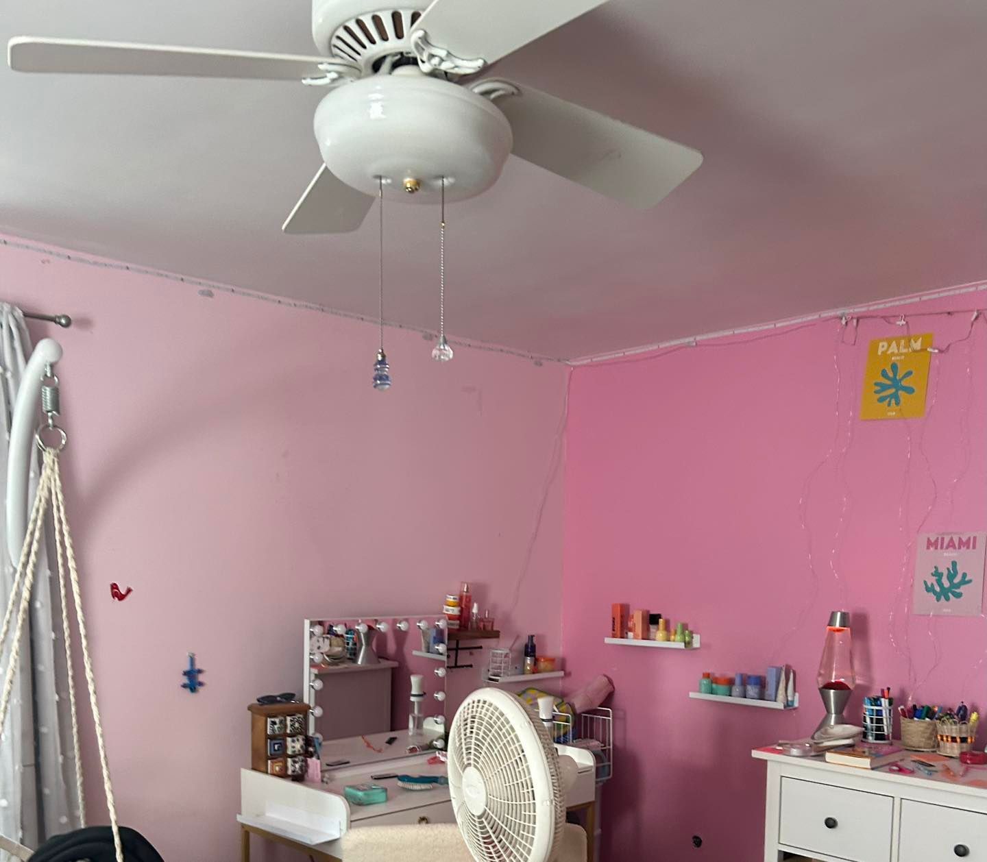 (The drywall was already primed by the drywall installer). We started by putting two coats of Benjamin Moore ceiling paint up.