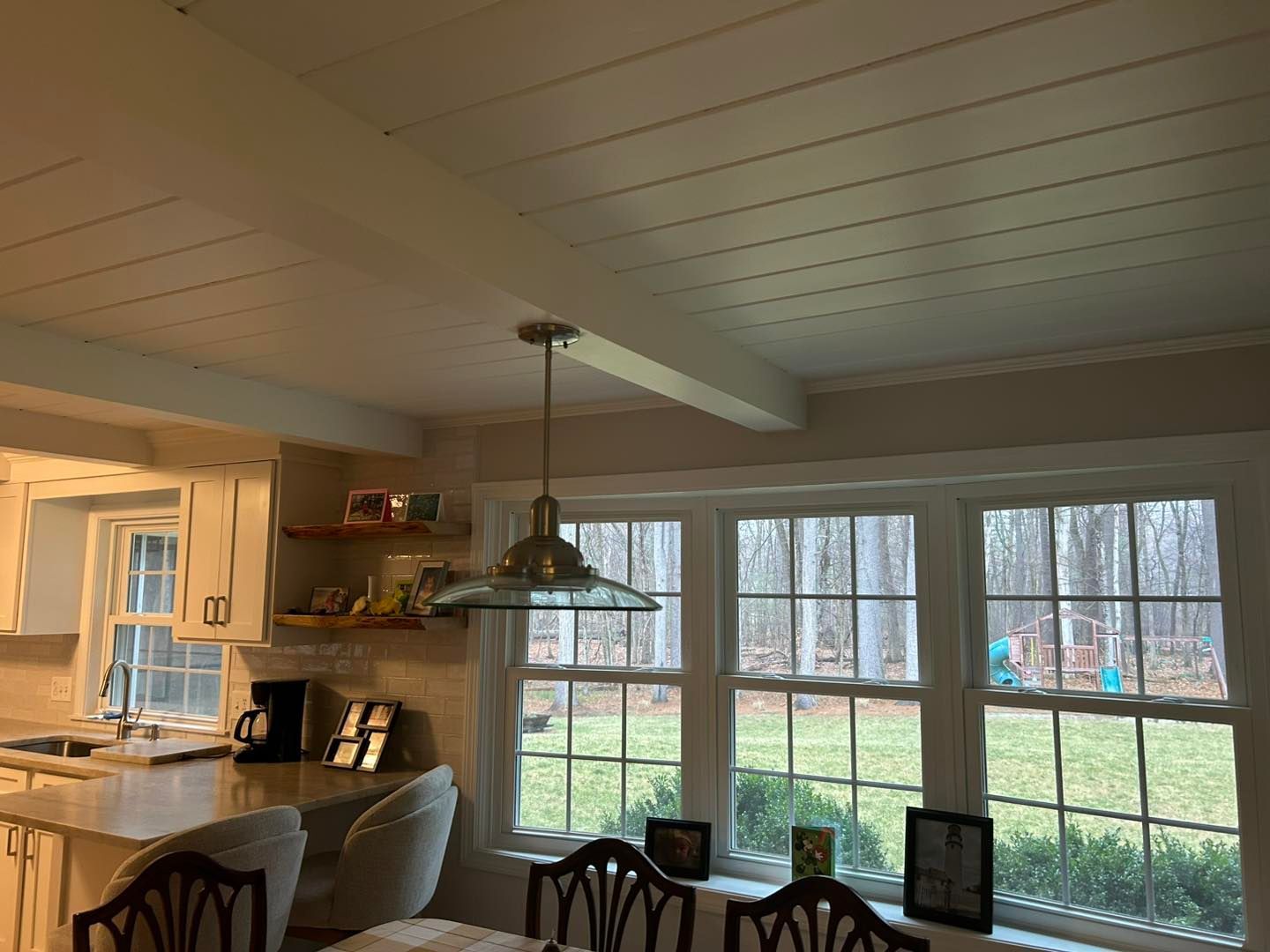 The ceiling was given two coats of Benjamin Moore's waterborne ceiling paint.
