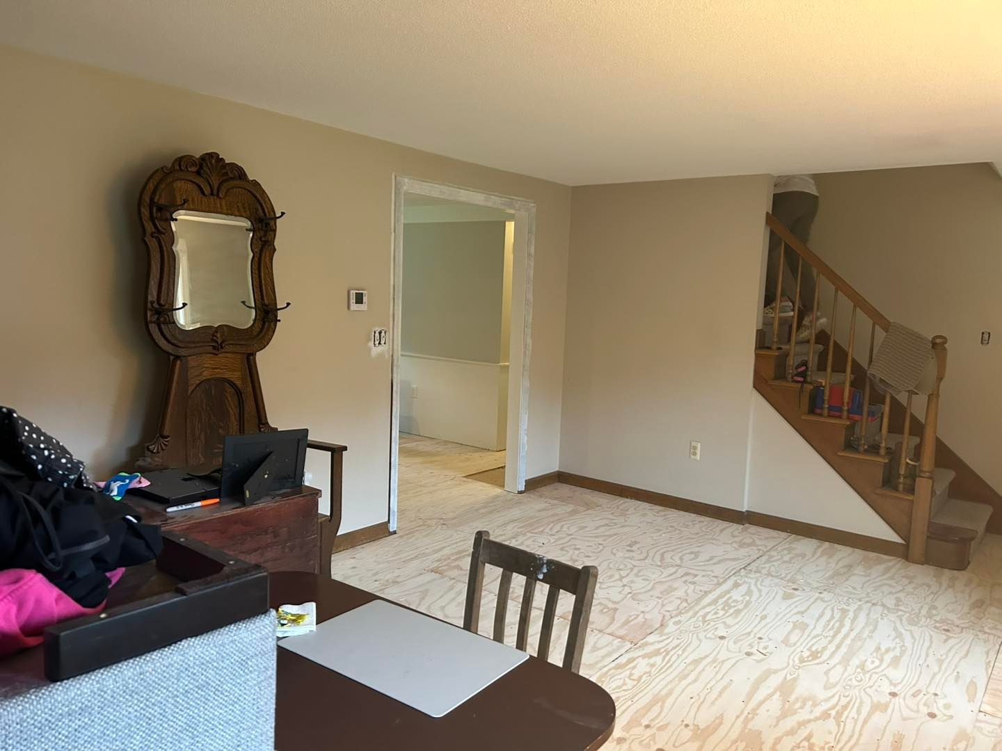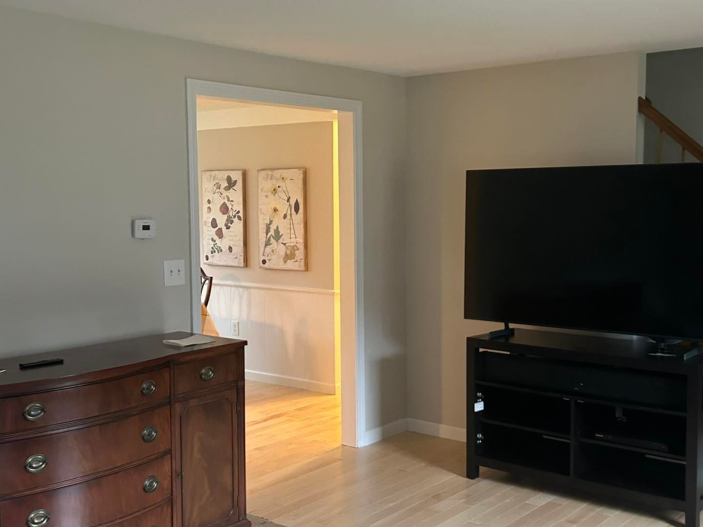and stairwell, dining room and bedroom.