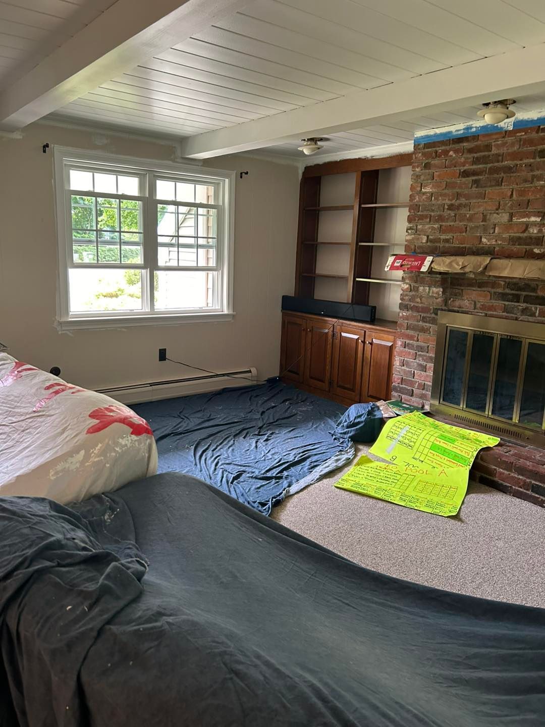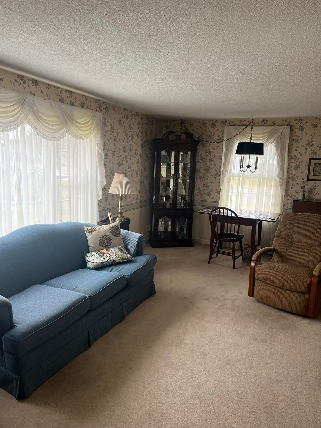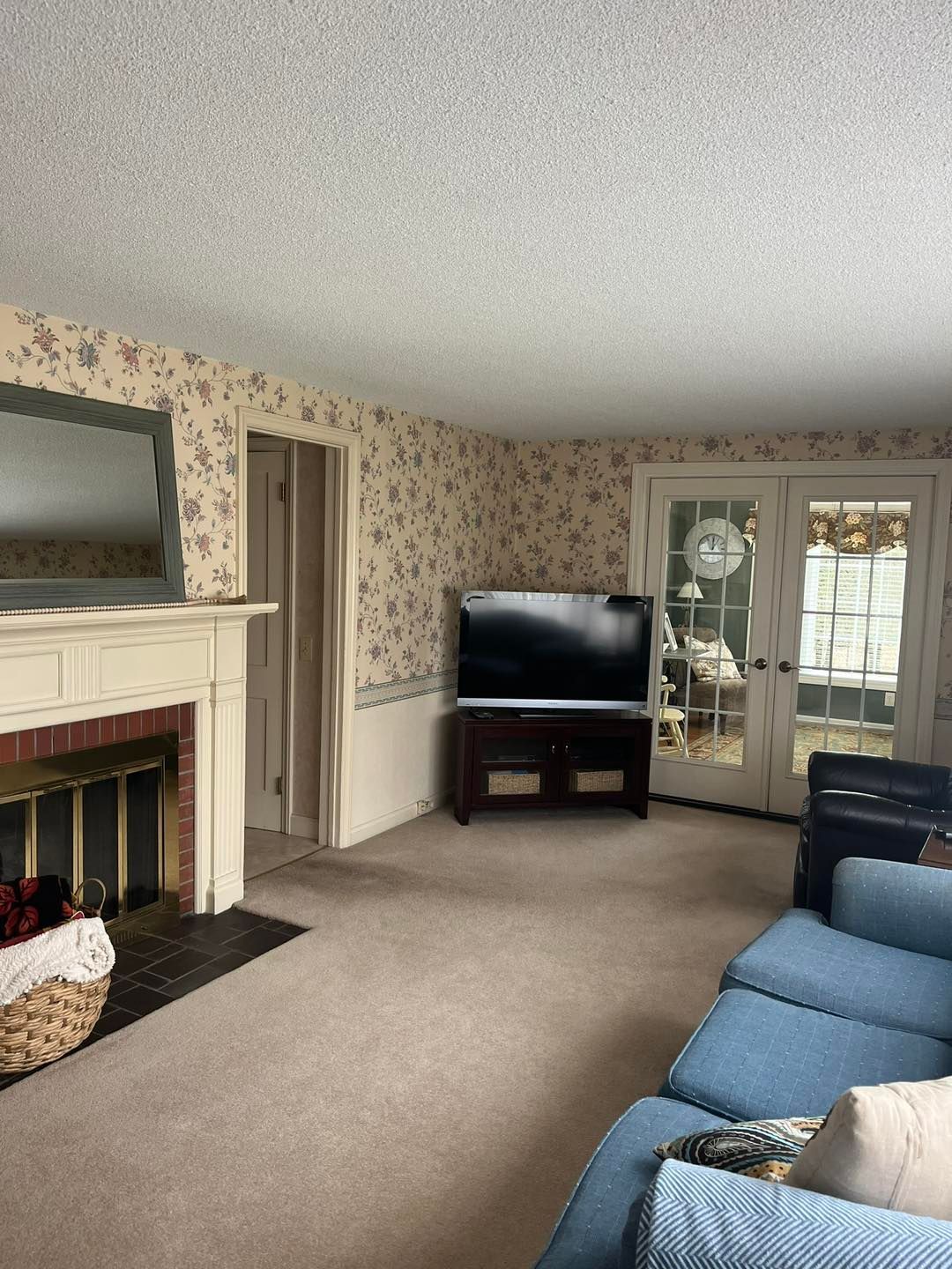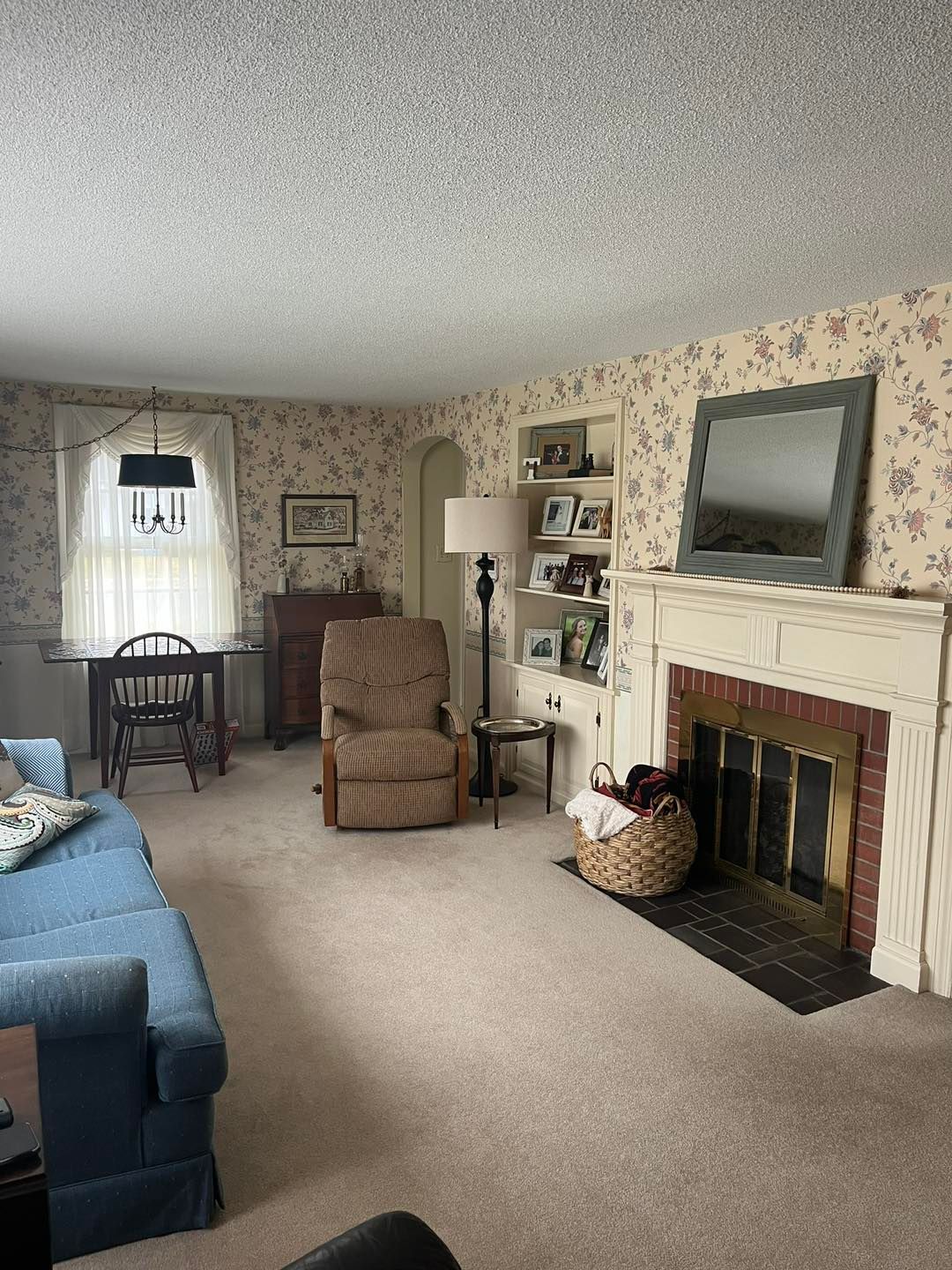 This time they were redoing their living room. All wallpaper was removed by the homeowner prior to our arrival.