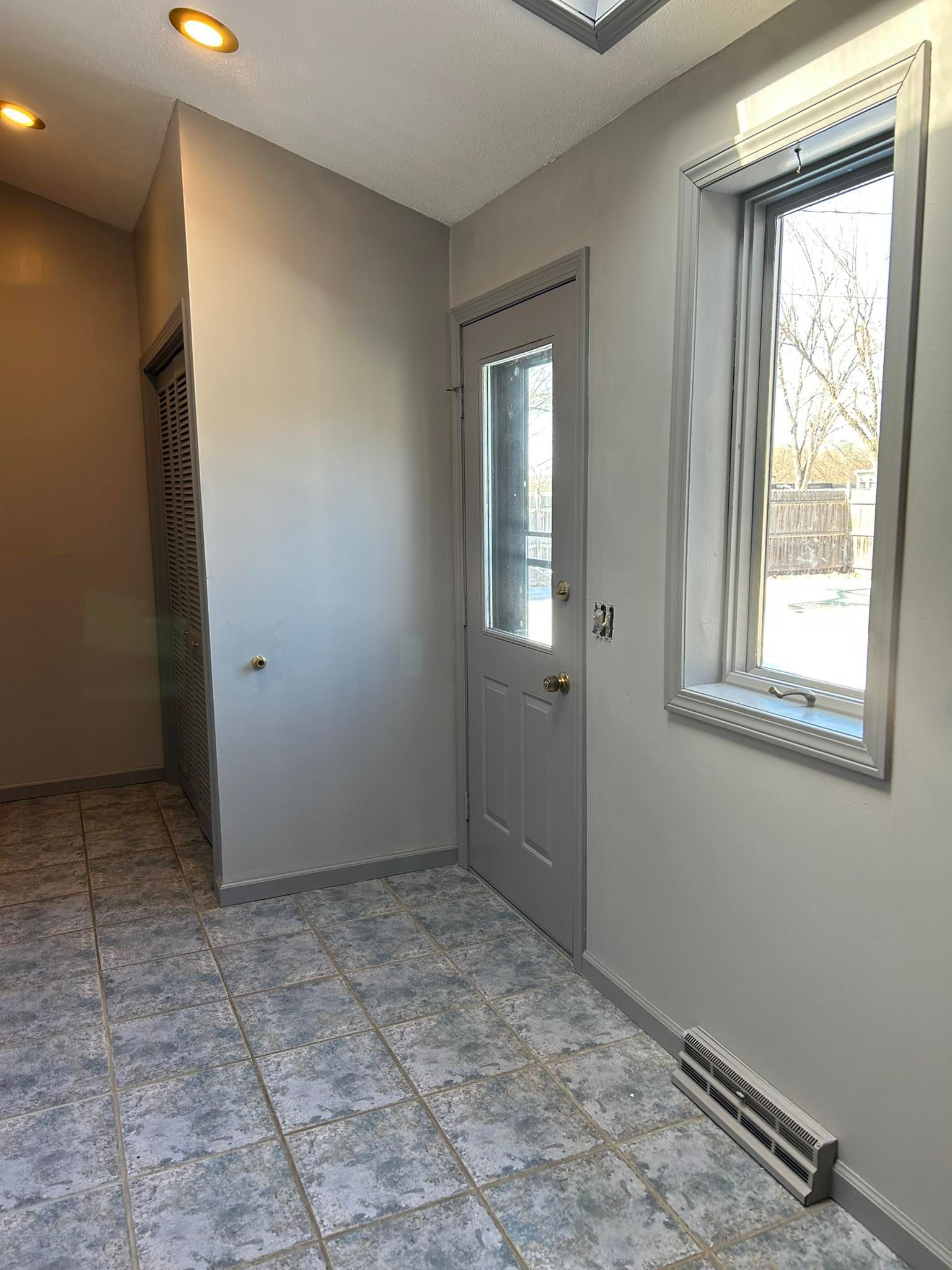 All trim, doors and woodwork around the heating ducts were primed and given 2 coats of a white semi-gloss.