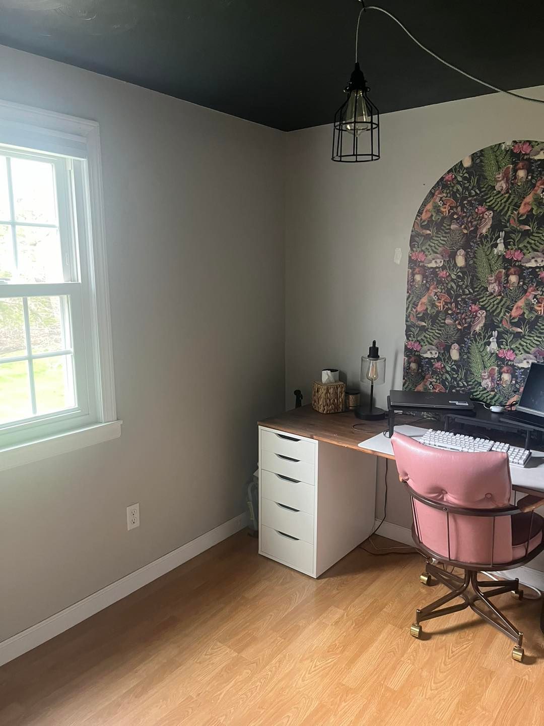 The office ceiling was painted twice with Raccoon Fur (flat finish). Again, the walls were recut in twice.