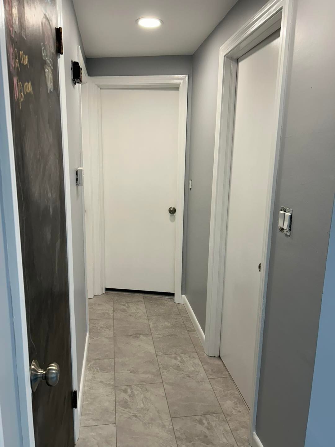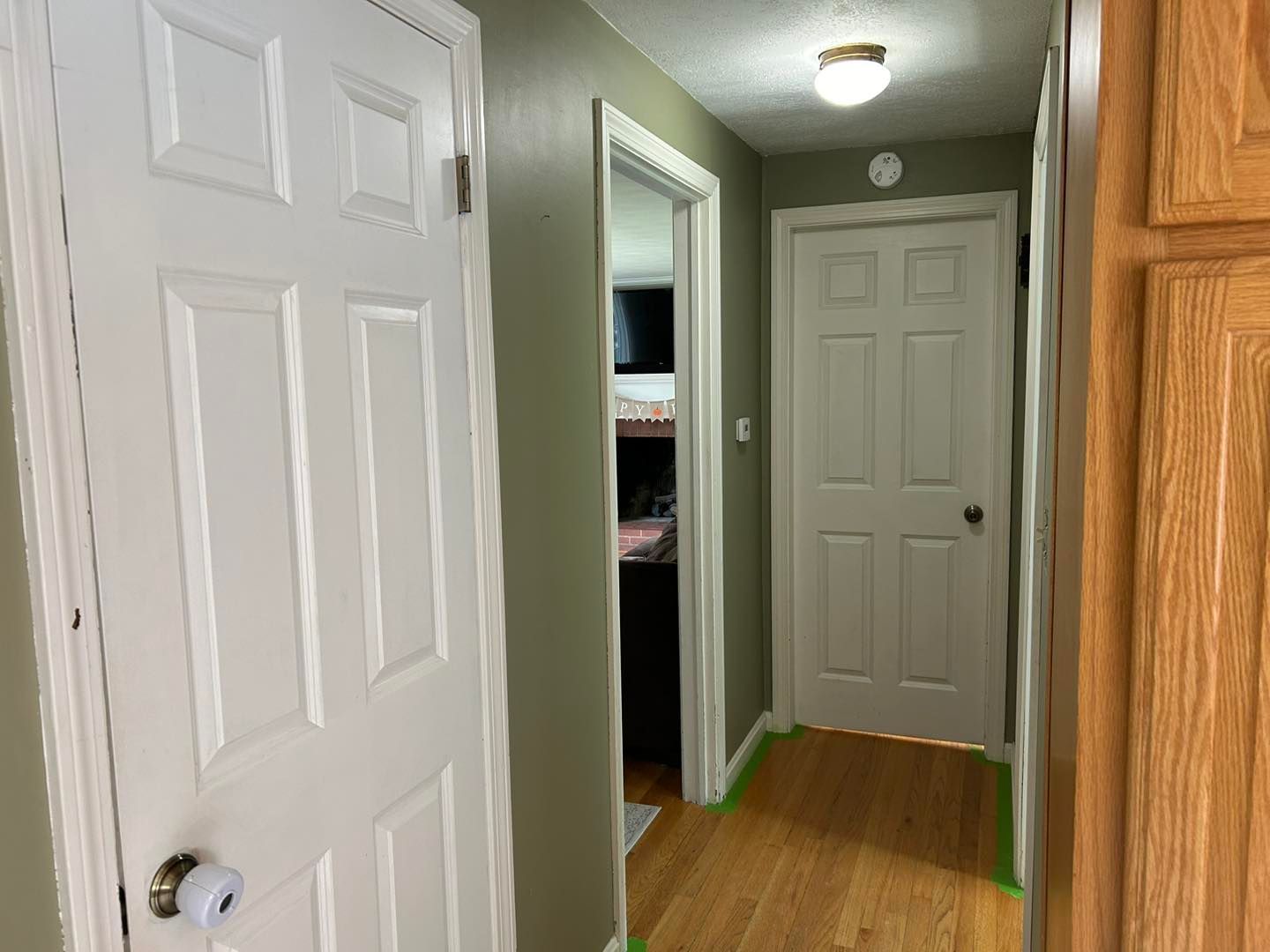 We continued down the hallway with the same color pattern but also painted both sides of the bath, office, master bedroom and cellar doors.