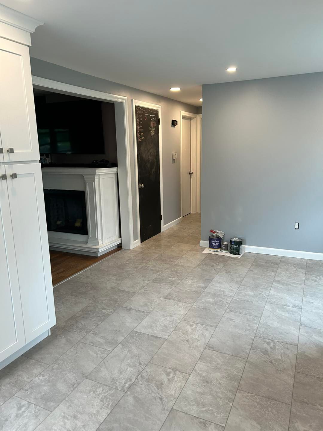We started in the family room where the closet door, interior side of the entry door, baseboard and trim were all given two coats of Ben Moore’s White Cloud with a semi-gloss finish. From there the walls were given two coats of Balboa Most with an eggshell finish.