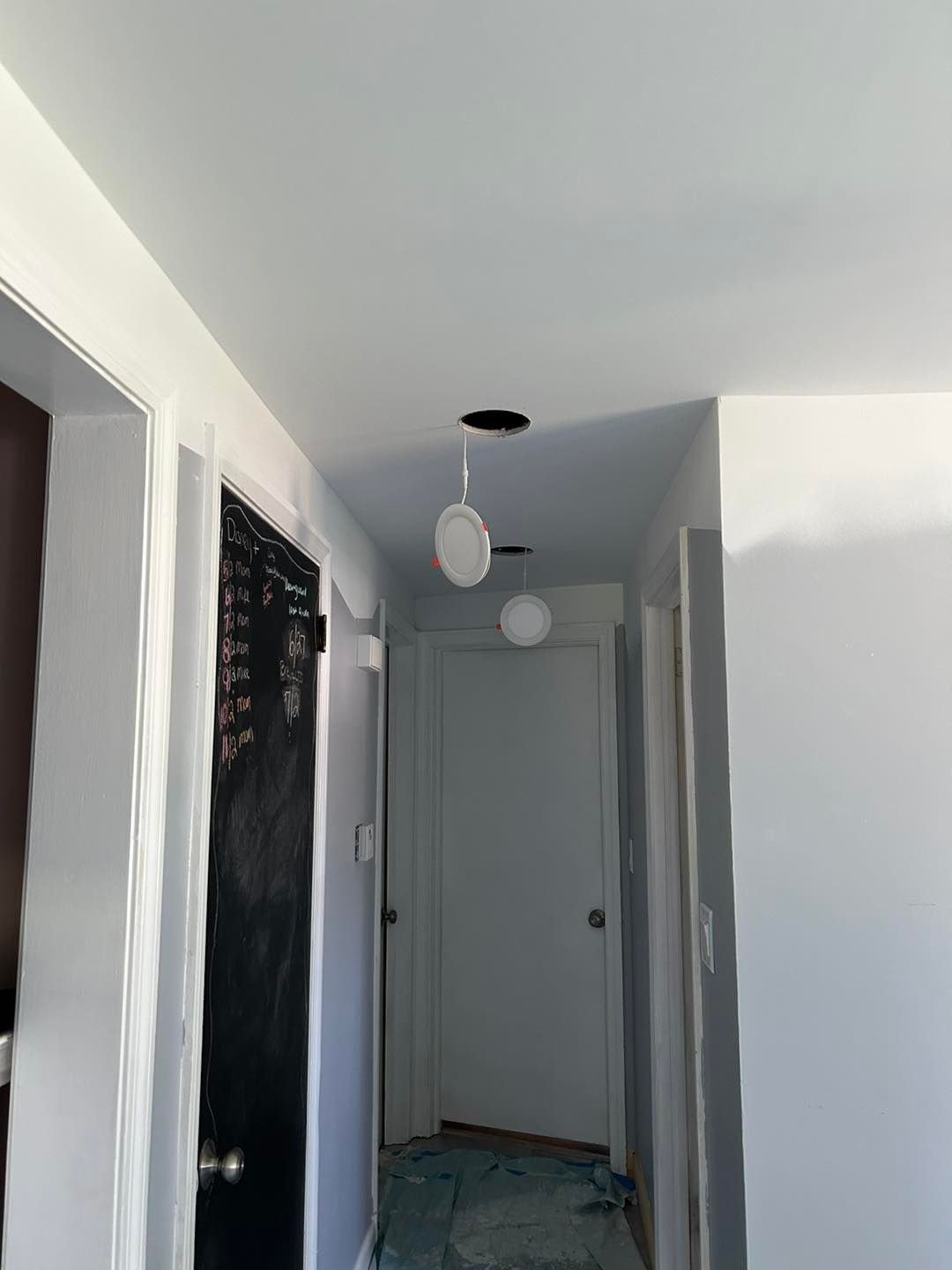 From there, we moved on to the hallway. We needed an area to stage the gear after the ceiling had been painted, so the floor was covered with builders' paper.